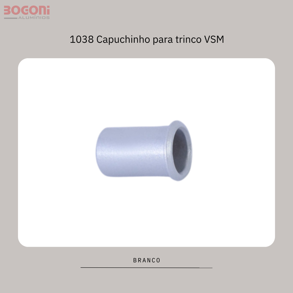 O capuchinho 1038, também conhecido como copinho, é uma peça em alumínio utilizada para encaixe do pino de trincos ou fechaduras em sistemas de portas e janelas de vidro temperado. Sua função é proteger o ponto de contato, garantir o correto posicionamento do pino e proporcionar um acabamento limpo e seguro.