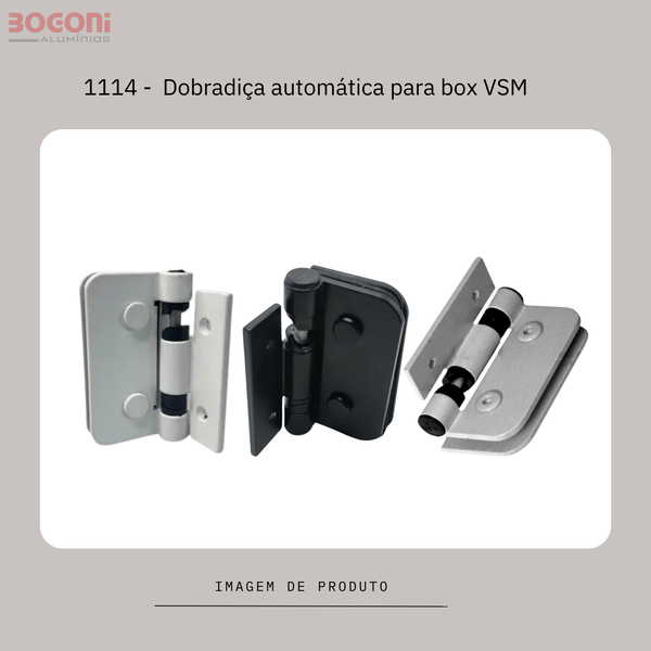 A dobradiça 1114 é um modelo automático projetado para portas de box em vidro temperado. Produzida em alumínio com pintura eletrostática a pó, possui cortiça colada para absorção de impacto e acompanha parafusos em inox e latão. Ideal para garantir fechamento suave, segurança e durabilidade em ambientes úmidos.