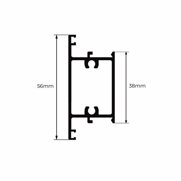 Instalado na horizontal da folha, ele fornece estrutura e estabilidade para o conjunto, além de permitir o encaixe de outros perfis como montantes e baguetes.