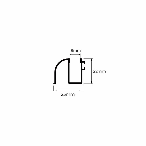 O perfil BX219 é um trilho inferior com encaixe para escova, utilizado na montagem de box de vidro temperado com vidro de 8mm.
