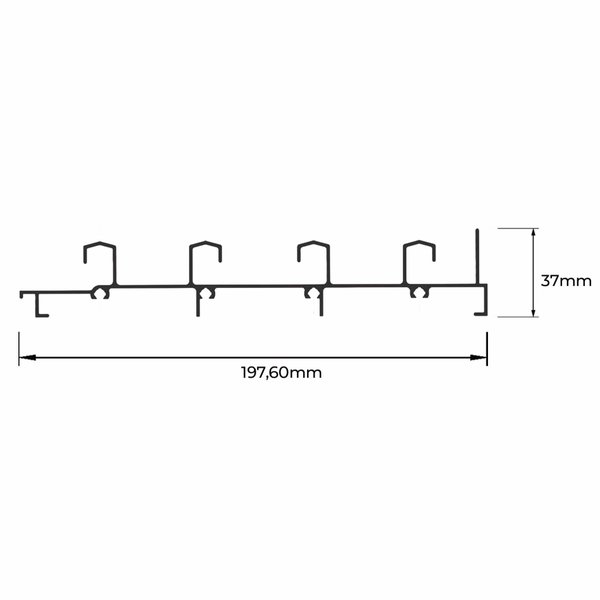 O perfil LG071 é utilizado como trilho inferior na montagem de portas e janelas de correr com 4 folhas da Linha Gold – HYDRO.