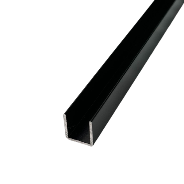 Perfil de Alumínio em formato “U”, com 14,00mm de base, 15,00mm de altura e 1,20mm de espessura, com 6 metros de comprimento.