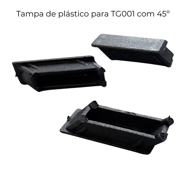 Tampa plástica de acabamento com encaixe interno, indicada para cobrir as extremidades do perfil TG001 (25,4 x 12,70mm, 45º), também conhecido como perfil de 25x12. Proporciona proteção contra sujeira e um acabamento visual limpo e seguro. Pode ser usada em estruturas metálicas, corrimãos, portões, mobiliário e diversos projetos.
